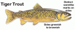 There is one other trout found in some of the creeks on the easter seaboard called a tiger trout. In some creeks, they occure naturally when there is a cross breeding between a brook trout and a brown trout. The offspring are called “tiger” because of the striped markings on its sides. It is a mule fish meaning it is sterile and cannot reproduce. Even though this trout is born and bred in the creeks, it is still not considered a native trout. There are some northern states that have stocking programs in place specifically for the tiger trout.Most folks assume that since a trout placed in a stream reproduces that the offspring are classed as native. They are not, they are classed as “wild” like all hold over fish (stocked fish that survived the year).