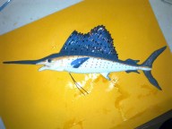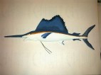 A Finished Sailfish! Though the picture doesn’t do much justice, the piece is beautiful. This one will go behind glass with the Marlin and Dolphin for the completed “Offshore Slam”.